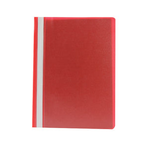 Q-Connect Project Folders. Quality light weight folders with a glass clear front coloured opaque back full length title strip and standard 8cm 2-prong bar mechanism perfect for quotes reports and proposals. Colour - Clear/Red.