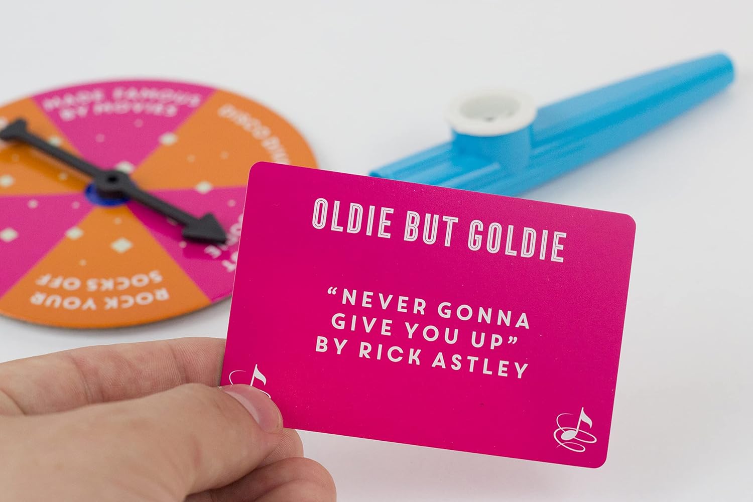 Players spin the spinner to pick a category, grab a kazoo and hum the tune for their teammates to guess. It’s the ultimate in musical mayhem!