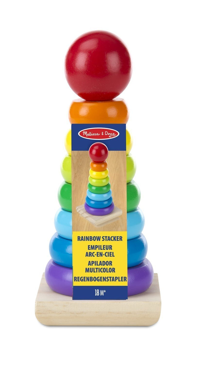 Talk about a classic childhood toy! All the colors of the rainbow are represented by these eight smooth, easy-grasp wooden pieces. Stack them on the solid-wood base, designed with rocking edges for safe and intriguing play.