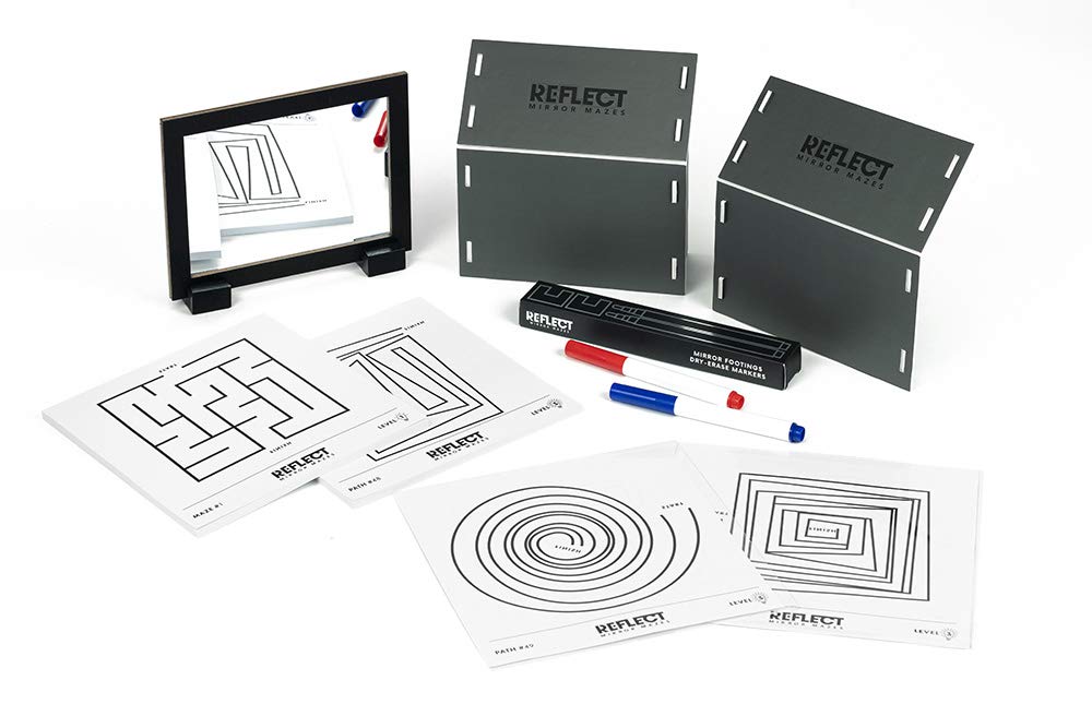 - Set contains: two sets of 100 challenges, double sided mirror, two hand guards, two transparent pockets, two dry-erase markers and instructions.