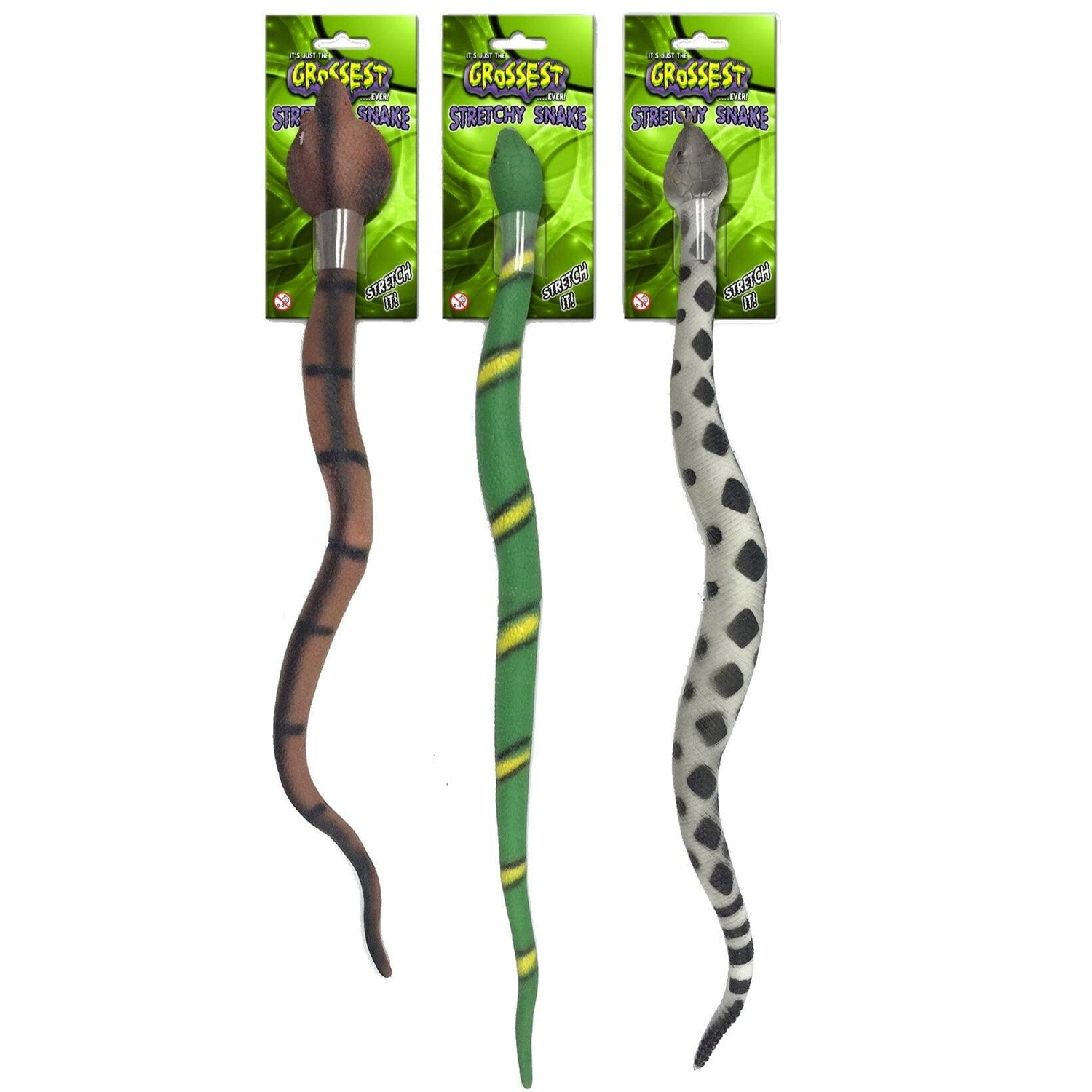 Play a prank with the Stretchy Snake. Hide the snake for your friends to find and watch them scream!