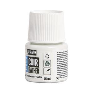 Depending on the type of leather or imitation leather, the colours can have a more or less matte-satin finish. To obtain the desired finish, use Pebeo matte-satin or glossy varnish or a mixture of both.
