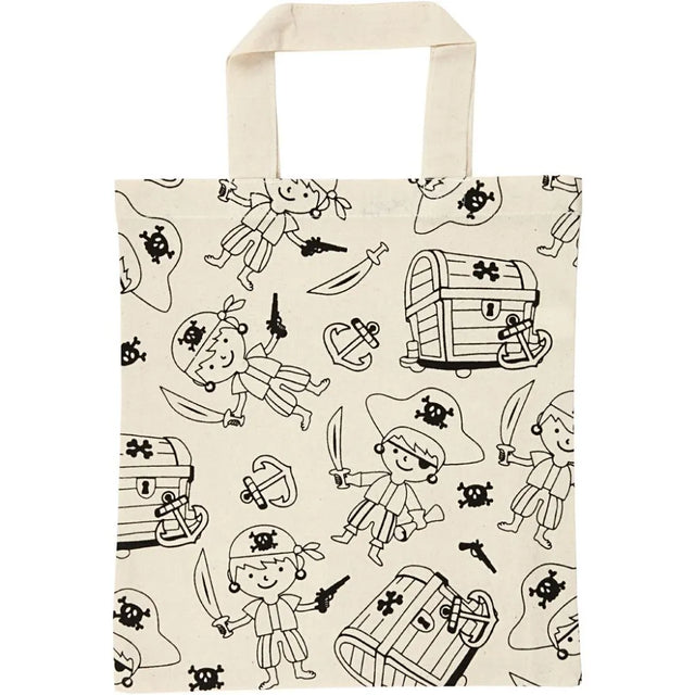 This tote bag is filled with small pirates, big treasure chests and cool sabres that are ready to be decorated – and you can do this with textile markers and textile paint. Before you start, it's a good idea to place a layer of paper, card or plastic inside the tote bag – as this will ensure that the colour doesn't rub off on the backside. Also remember to iron the bag when the paint is dry so that it can withstand being washed.