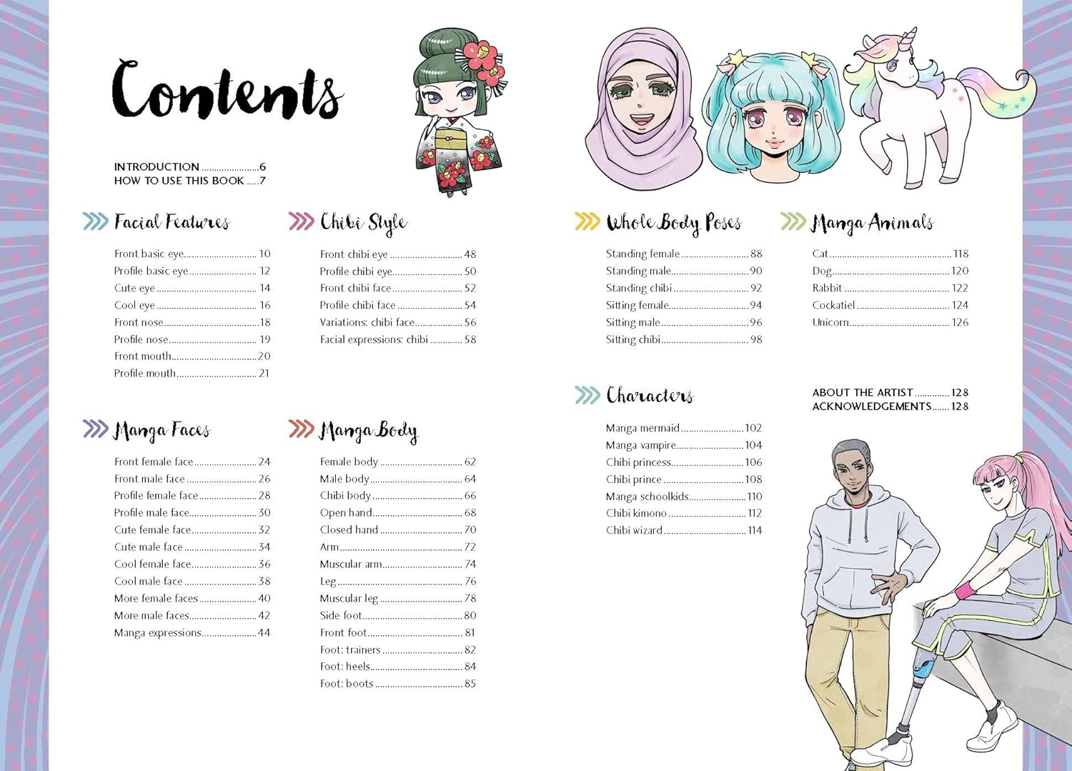 Create over 30 different portraits, from cute chibi people to a multicoloured manga unicorn, by following the instructions inside.