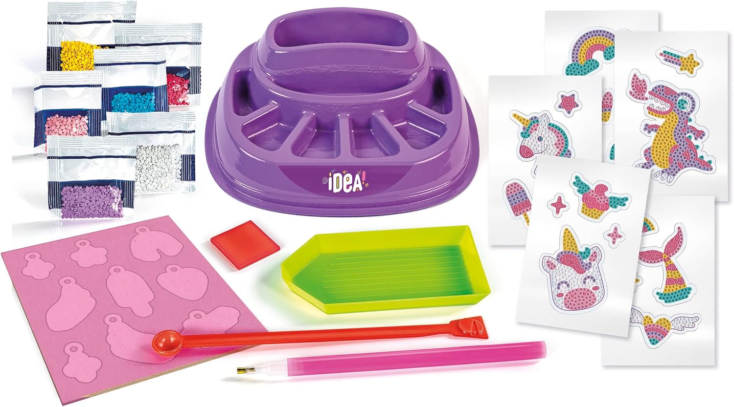 In this version the illustrations are fantasy themed, with cute unicorns... also collect other versions of the Sparkly Creations line by Idea! Thanks to the practical accessory holder, you can keep all the components in order: create your own workspace, organize your space and start creating.