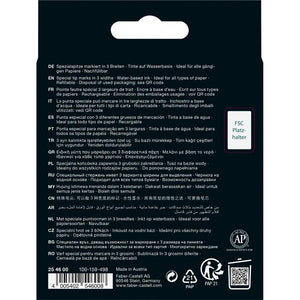 In addition, thanks to the special tip made of polyester, text passages can be edited individually and precisely in three different line widths.