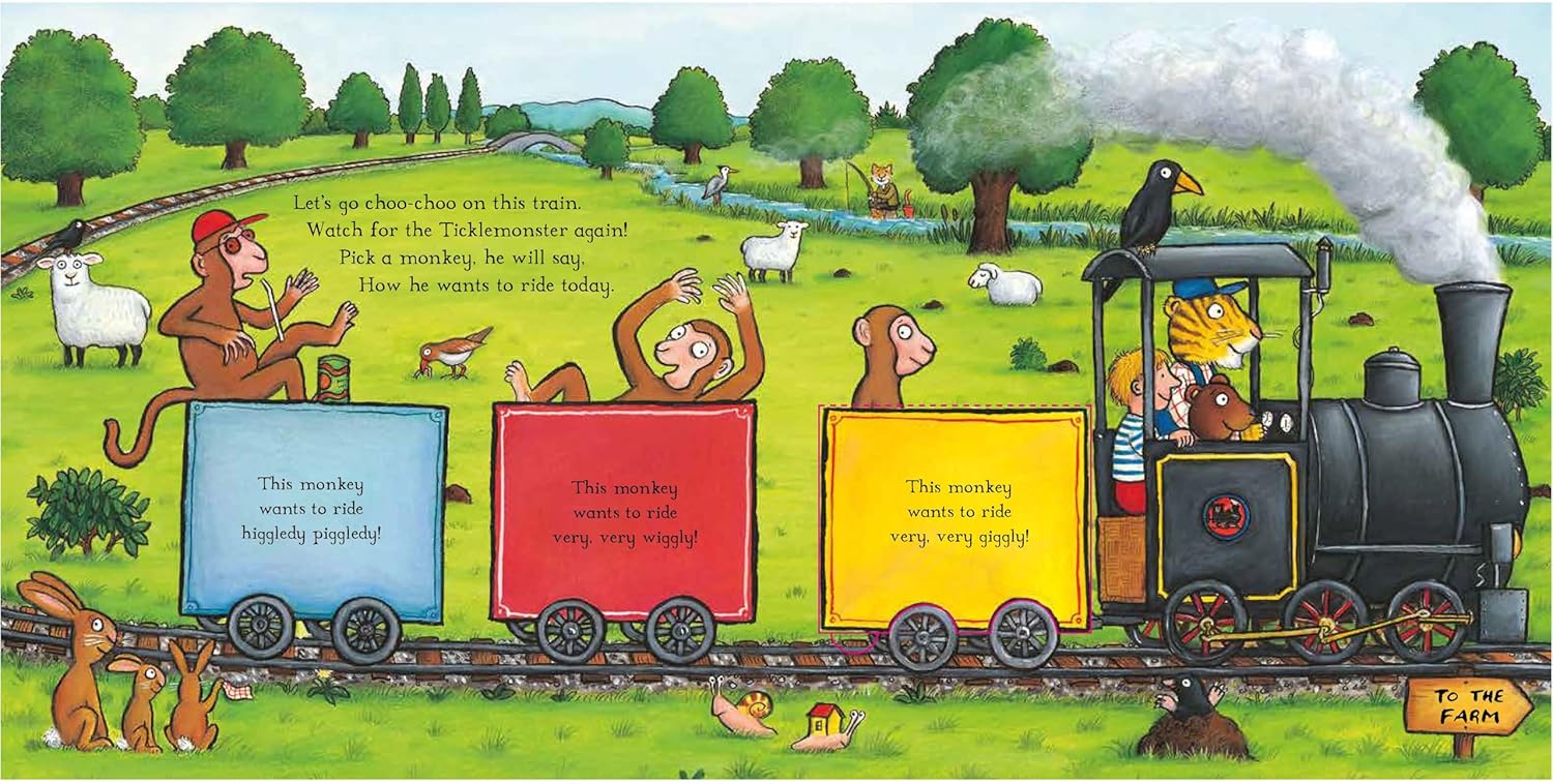 Look out - there's a Ticklemonster about! And he's off to tickle all his animal friends, from the pigs on the farm to penguins at the zoo.