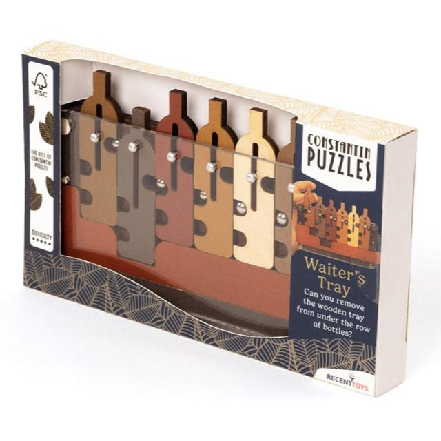This waiter is ready for a break—but first he must remove all the bottles from his tray.