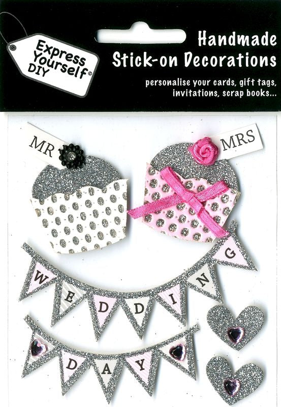 Self-adhesive decorations, handmade using a variety of quality fabrics, ribbons, sequins, diamonds and printed elements.