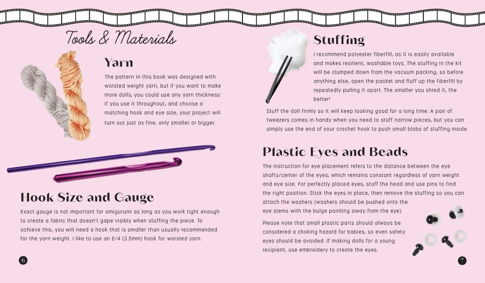 The crochet instruction book includes everything you need to know to make your own amigurumi Marilyn doll.