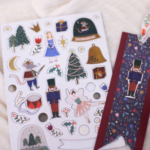 The Nutcracker Chipboard Stickers pack includes 35 stickers featuring a range of characters from the classic tale alongside charming illustrations of Christmas trees, bells and baubles.