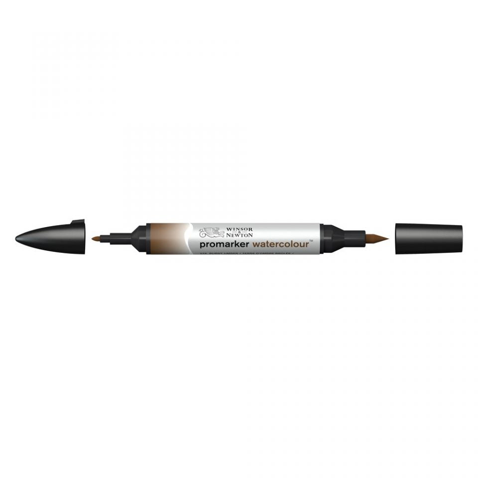 A rich dark brown pigment, Burnt Umber is made from natural brown clays found in earth. It was named after Umbria, a region in Italy where it was mined. Burning the raw pigment intensifies its colour. Please note: as we are launching the new promarker watercolour packaging, you may receive either of the markers photographed here. Both markers have the same nibs, and contain the same ink.