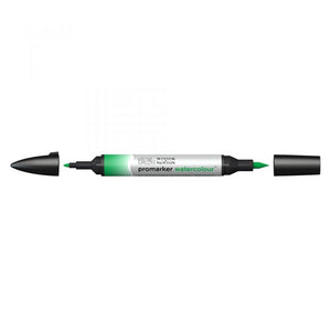 Phthalo Green (Yellow Shade) is a brilliant transparent green pigment with a yellow undertone. A modern pigment, it was introduced in 1930s. Please note: as we are launching the new promarker watercolour packaging, you may receive either of the markers photographed here. Both markers have the same nibs, and contain the same ink.