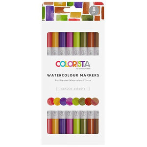 The Botanic Accents set includes eight Colorista Watercolour Markers in a range of rich and warm hues inspired by the outside world. Mix and blend the water soluble dye colours on a palette for a nearly-endless kaleidoscope of hues, shades and tints. So whatever has caught your eye, you can customise colours to create your own beautiful watercolour artwork.