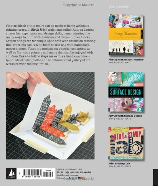 Use these printing blocks, or purchased stamps, to create repeat patterns or bundled groupings to get that classic block print look for wallpaper, book illustrations, framing prints, greeting cards, gift wrap, fabric prints, and so much more! Throughout the book, find inspiration from selected works of block print artists from around the world.