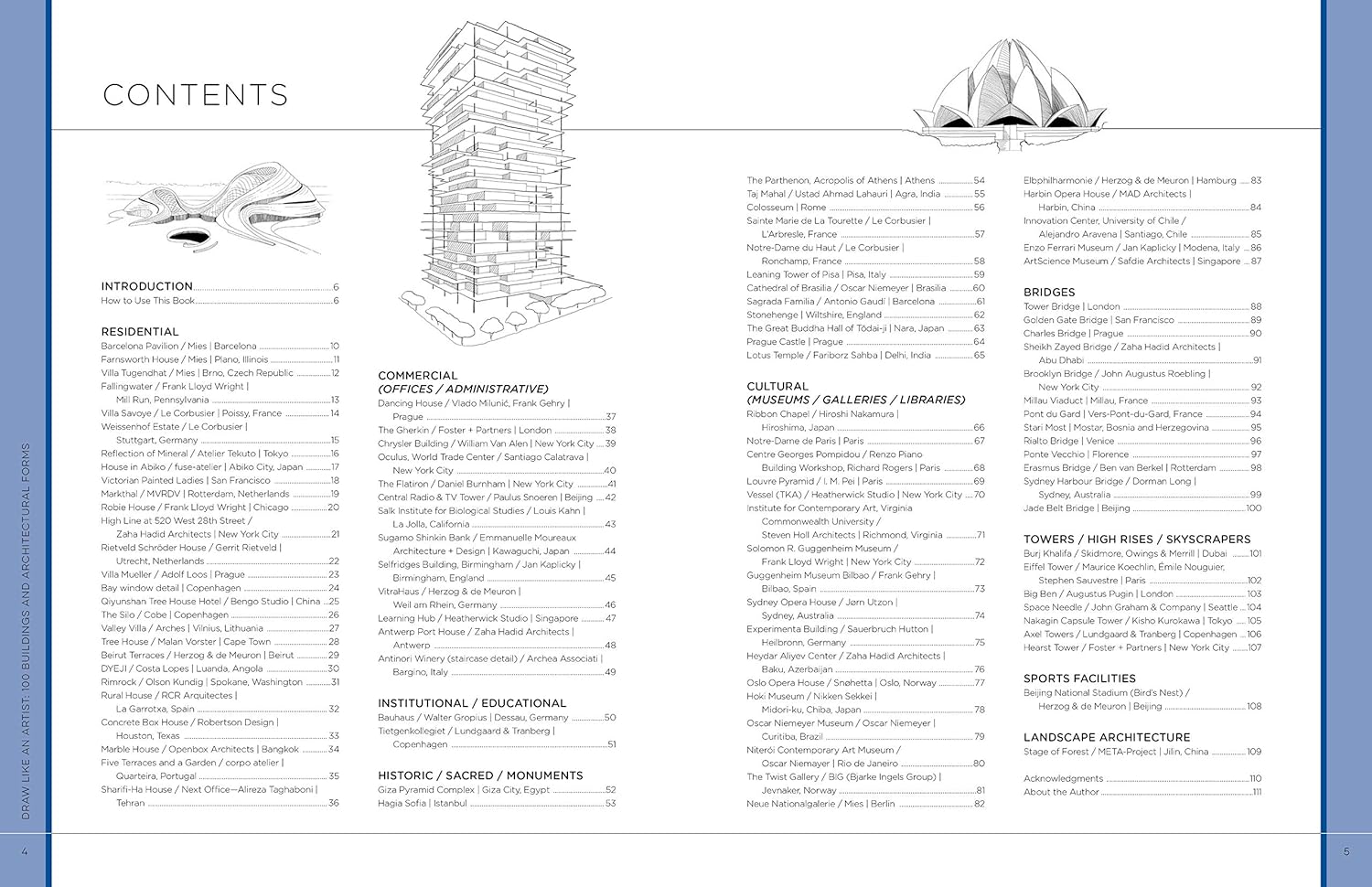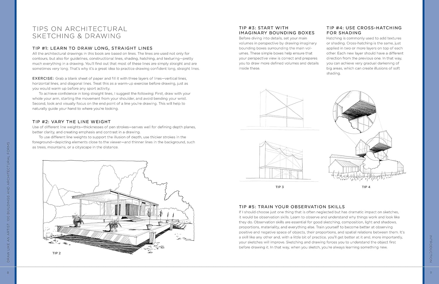 Draw Like an Artist: 100 Buildings and Architectural Forms is a library essential for any artist or architect who's interested in learning how to draw and explore the underlying design principles of influential constructions. This step-by-step guidebook demonstrates fundamental art and architectural concepts like proportion, perspective, and spatial relationships as you learn to draw a wide range of important buildings, bridges, towers, and other structures. Each set of illustrations takes you from beginning sketch lines to a finished drawing.
