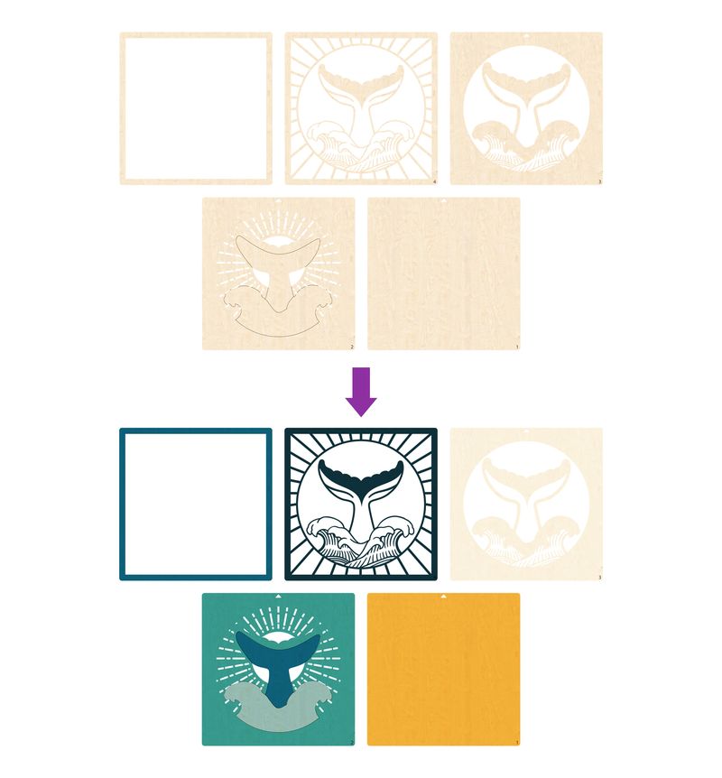 - 5 Layers of Wood (Pre-cut pieces forming a 3D whale scene)