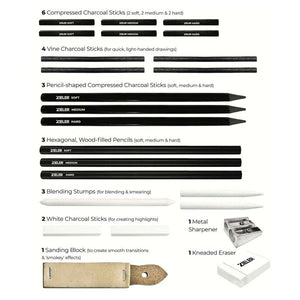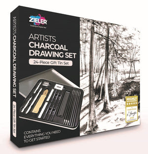 This set contains a variety of 24 pieces to get you started with charcoal drawing.