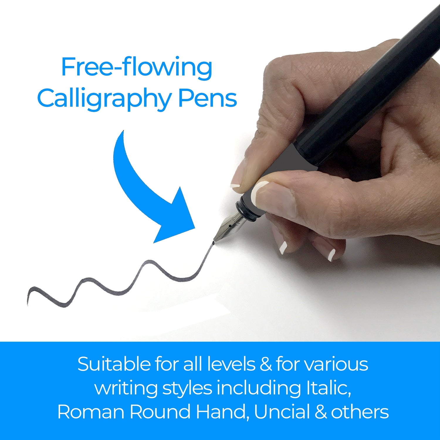 - SUITABLE FOR ALL & A VARIETY OF USES - This calligraphy set makes an ideal gift for beginners as well as more accomplished users. Perfect for wedding invites, letter writing, post cards or just doodling! With these pens you can you can master the popular writing styles of italic, Roman Round Hand, Uncial and others.